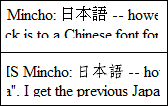 This bug manifests (at least) in windows, when using a font ordering so that western text is styled in Times/Times New Roman, and Japanese text is styled using "MS Mincho", a specifically Japanese CJK font.